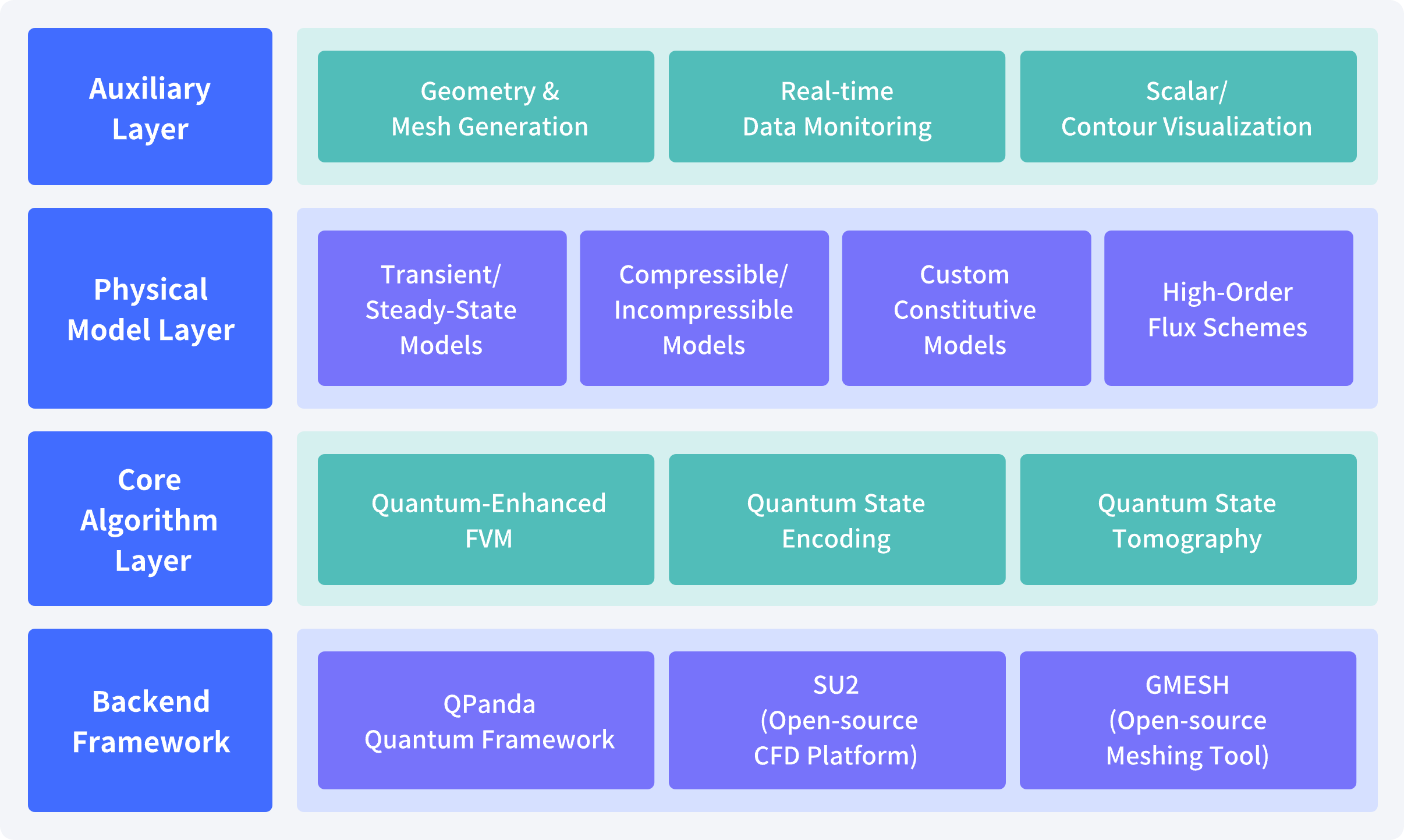 QCFD is an advanced fluid dynamics simulation software built on quantum computing technology, designed to leverage the massive parallel processing power of quantum computing to overcome performance bottlenecks faced by traditional computational methods in fluid dynamics.